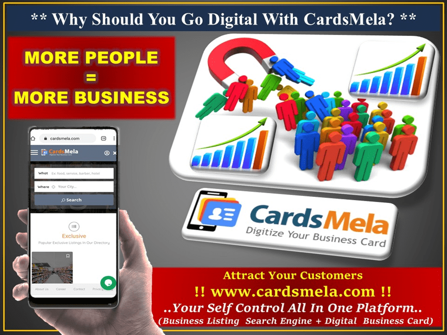 - CardsMela is an unique concept of combination of creating Digital Business Card & to auto publish them as Business Listings on Search Engine www.cardsmela.com.